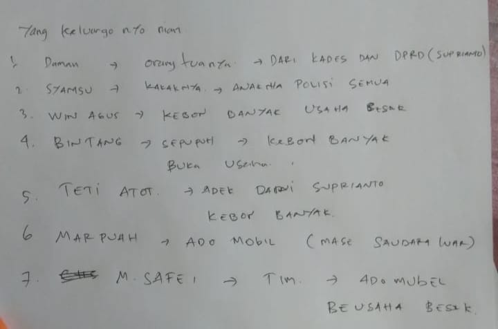 Keluarga yang dimaksud oleh Supriyanto yang masih menerima BLT DD adalah Ayah, Paman, dan saudara perempuan Supriyanto.