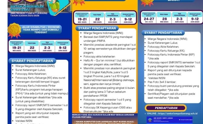 KABAREMPATLAWANG.COM — SMK Negeri 1 Empat Lawang resmi membuka pendaftaran Seleksi Penerimaan Peserta Didik Baru (SPMB) untuk Tahun Ajaran 2025/2026 pada tanggal 19 Mei 2025.