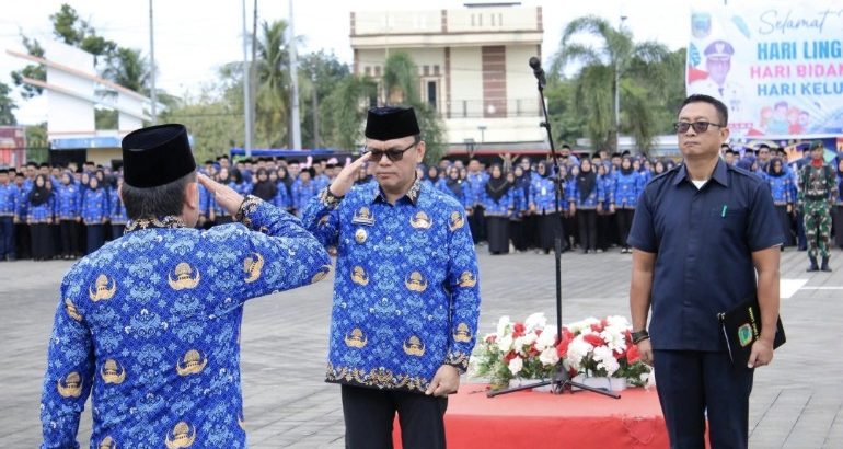 Awali Hari Pertama Kerja, Bupati Joncik Pimpin Upacara Tiga Hari Besar Nasional. (Poto: ist/ist)
