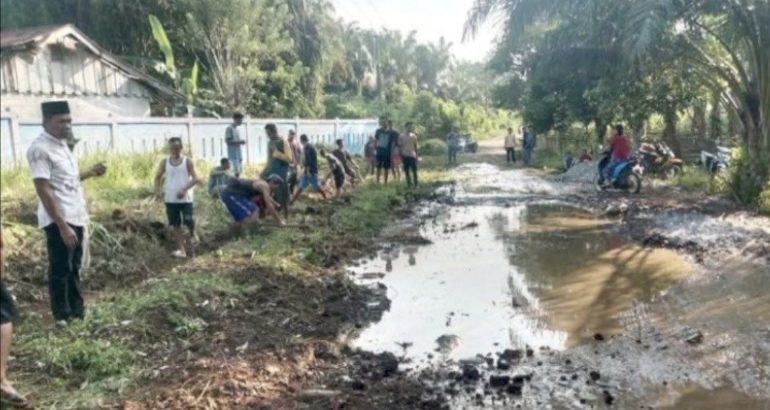 Jalan berlubang dan digenangi air itu tak hanya menghambat mobilitas, tetapi juga melumpuhkan kegiatan ekonomi desa.