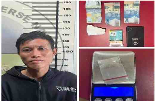 Setelah memastikan keberadaan target, petugas segera melakukan penindakan dan mengamankan seorang pria bernama Hendra Parta Wijaya (27), warga Jalan Anak Paye, Kelurahan Arimbi Jaya, Kecamatan Prabumulih Timur. Saat ditangkap, pelaku tengah bersiap melakukan transaksi narkotika jenis sabu.