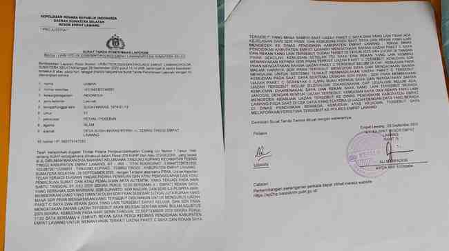 EMPAT LAWANG, KABAREMPATLAWANG.COM – Empat orang warga Desa Sugih Waras, Kecamatan Tebing Tinggi, melaporkan PR yang merupakan oknum PPPK ke Mapolres Empat Lawang atas dugaan penipuan dan pemalsuan ijazah Paket C (29/9).
