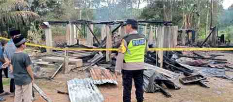 Satu unit rumah panggung milik Sudirman (60) ludes terbakar, menewaskan empat pelajar yang sedang tertidur lelap.