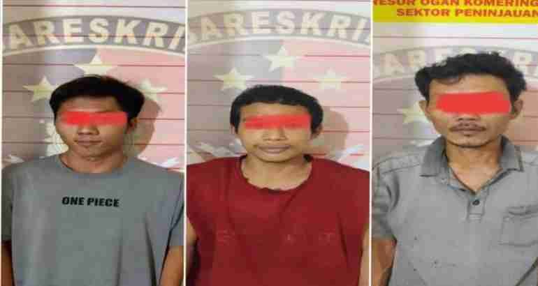 Ketiga pelaku masing-masing berinisial M (39), warga Dusun V Desa Peninjauan; R (25), warga Blok G Dusun V Desa Penilikan; dan IS (25), warga Blok H Desa Mekartitama. Ketiganya berasal dari Kecamatan Peninjauan, Kabupaten OKU.
