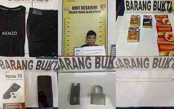 “Dari hasil pemeriksaan, pelaku mengakui perbuatannya. Barang bukti yang kami amankan di antaranya satu unit HP Realme Note 70, beberapa bungkus kopi dan rokok, serta pakaian yang digunakan saat beraksi,” jelas Ramdani.