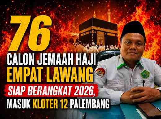 EMPAT LAWANG, KABAREMPATLAWANG.COM– Sebanyak 76 calon jemaah haji (CJH) asal Kabupaten Empat Lawang dipastikan akan berangkat menunaikan ibadah haji pada tahun 2026. Mereka tergabung dalam Kloter 12 Gelombang II Embarkasi Palembang.