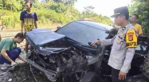 PRABUMULIH, KABAREMPATLAWANG.COM – Satu unit mobil Toyota Avanza Veloz tertemper kereta api