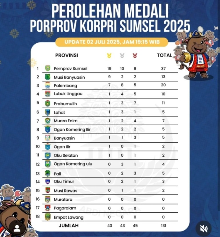 Ajang Bergengsi ASN Sumsel Memasuki Babak Panas, Empat Lawang Masih Nol Medali Pendidikan, Sumsel|Juli 3, 2025oleh kbr4L PALEMBANG, KABAREMPATLAWANG.COM – Hingga Rabu malam, 2 Juli 2025 pukul 19.15 WIB,